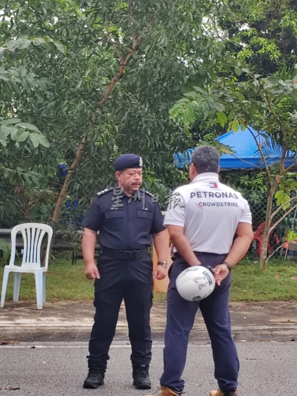 梳邦再也警区主任旺阿兹兰助理总监抵达现场,向国油公司代表了解后续的工作。