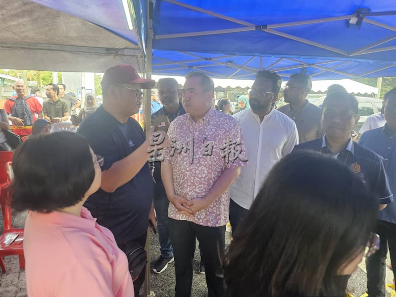 交通部长陆兆福在居民临时帐篷慰问居民。