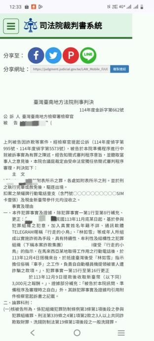 根据判决书,诈欺集团是以假中奖通知欺骗3名受害者共29万9258新台币(约4万900令吉),受害者汇款后,被告到银行自动提款机提领16次,总金额29万8000新台币(约4万700令吉)。