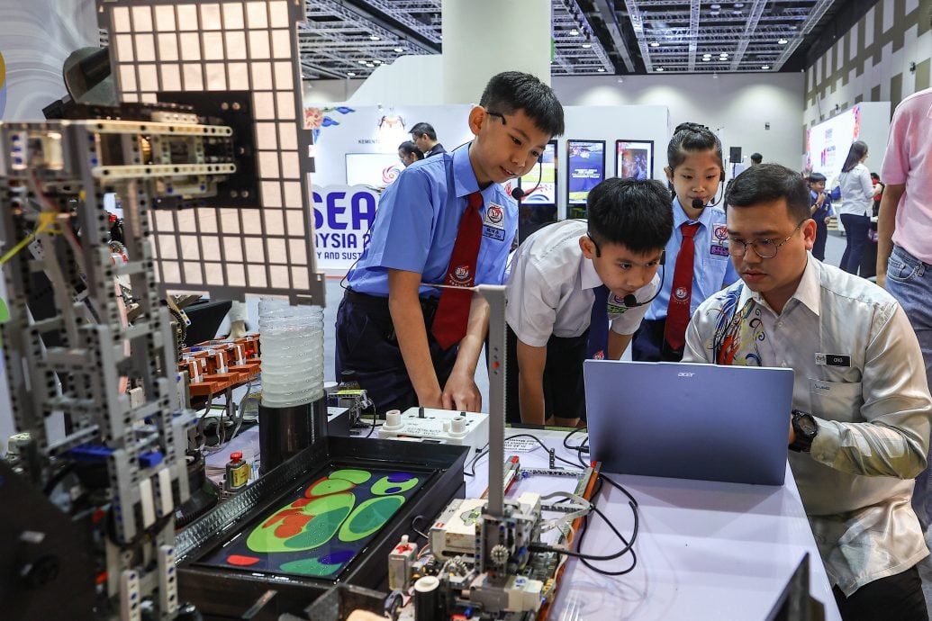 11岁的魏裕康在2025年吉隆坡东盟——马来西亚开放日展览会上接受马新社访问时说,他是在一次穿上足球球衣时发现,球衣颜色逐渐褪色,显现出纺织业常用的合成染料带来的问题。