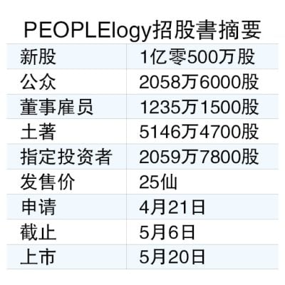 PEOPLElogy公司520创业板上市 每股25仙筹2625万