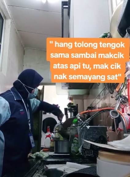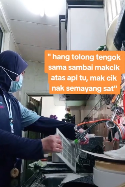(八打灵再也23日讯)清洁员上门为顾客清洗滤水器,主人家竟没把她当外人,还请她帮忙搅拌在烹煮的叁巴酱,避免煮焦了!
