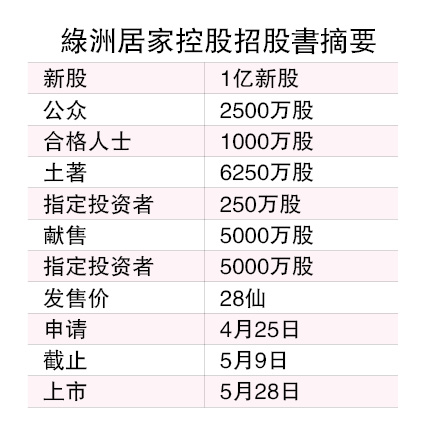 绿洲居家528创业板上市 每股28仙筹2800万令吉