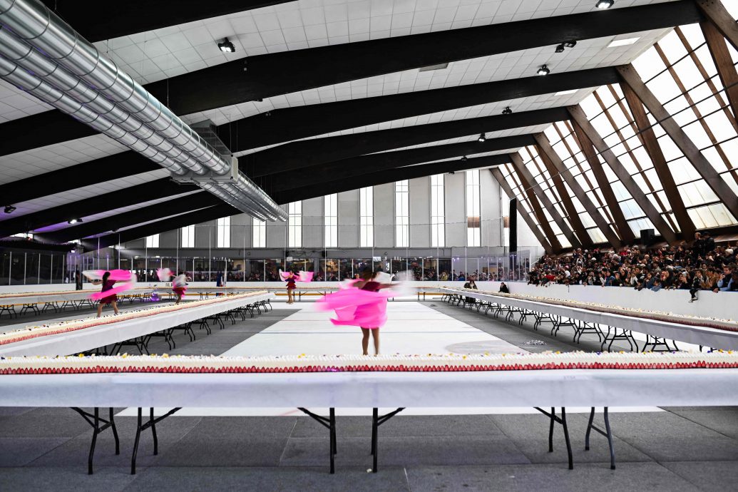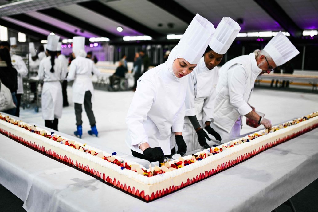 这个重1.2吨的蛋糕动用20名厨师,费时一星期制作而成。蛋糕材料包括约350公斤草莓,150公斤糖,415公斤奶油和4000只鸡蛋。活动召集人暨糕点师加图称想突显法国农产品,所以选用材料均在法国生产。这个蛋糕打破了2019年在意大利小镇圣毛罗托里内塞制作的100.48米长草莓蛋糕纪录。