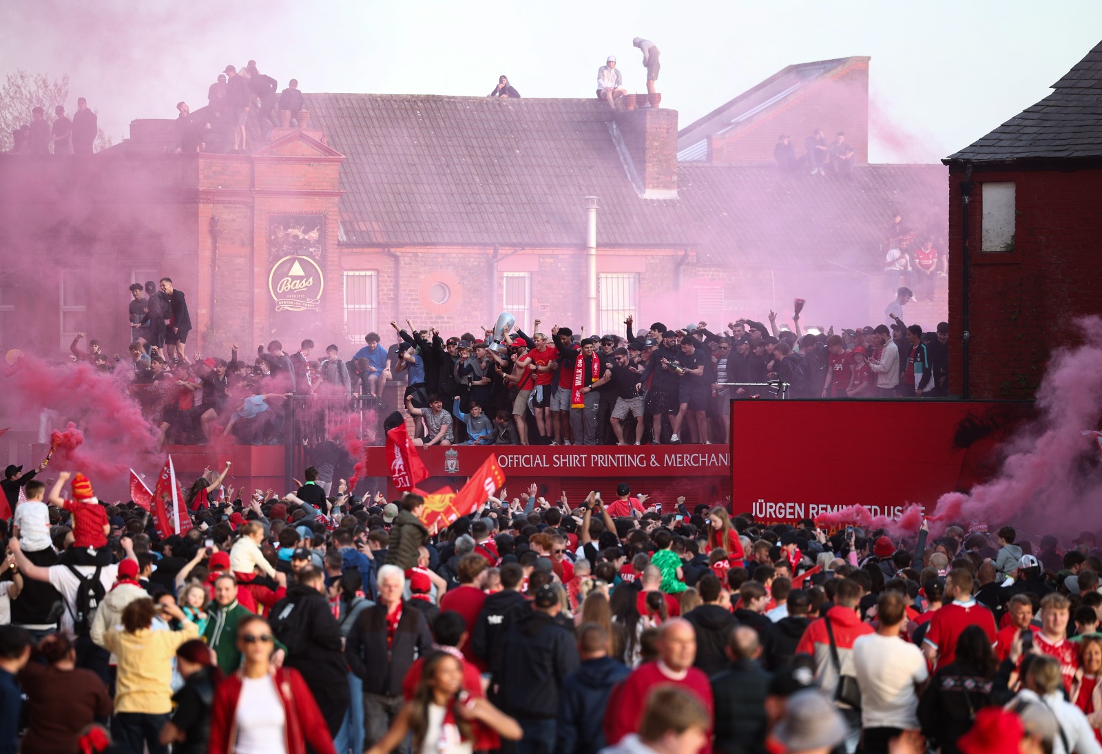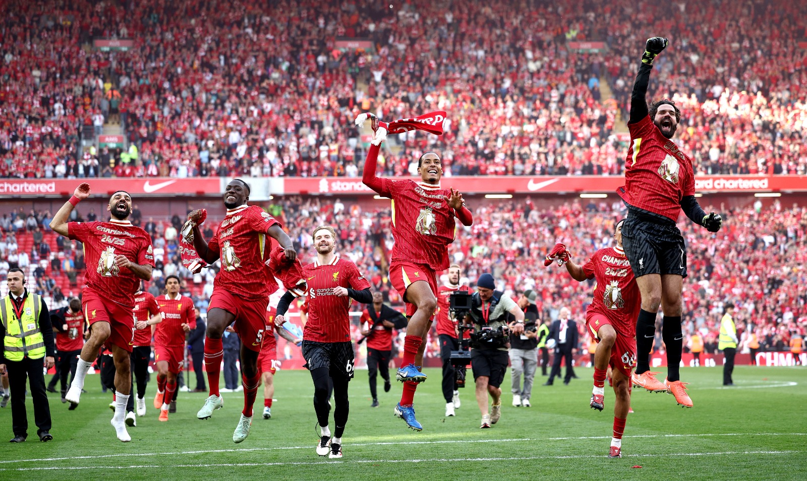 利物浦队长范迪克赛后激动表示:“2020年我们只能在空荡荡的球场庆祝,今天终于能与最棒的球迷共享这份喜悦。”据悉,利物浦市已准备在5月19日最后一轮主场赛后举行盛大冠军游行。