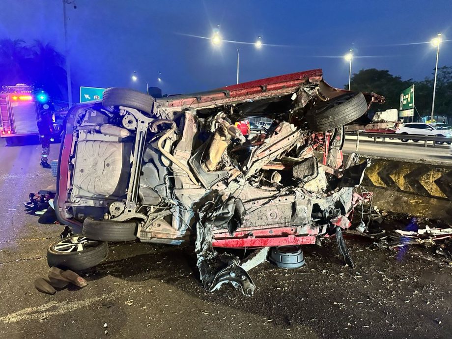 (八打灵再也2日讯)一辆轿车于今天清晨在隆芙大道失控撞上分界堤,车上3名本地男子不幸当场身亡。