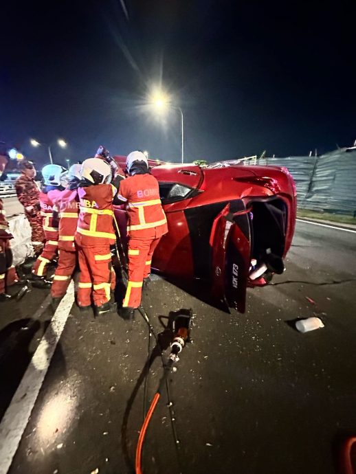 “一辆车牌号码为VDK1173的轿车失控撞上大道的分界堤,消拯人员花了1小时将车内3名印裔男子移出来。”
