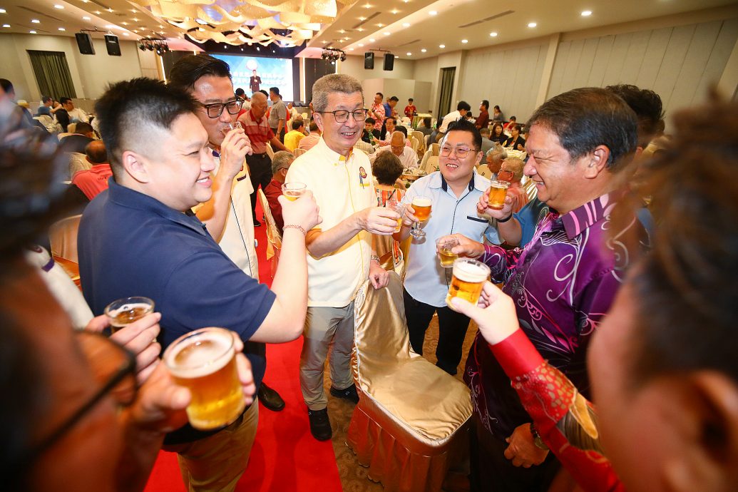 林福山(中)与出席欢迎宴的会员代表互相交流。(黄冰冰摄)