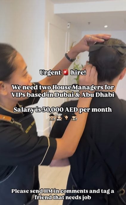 据了解,Royal Maison Dubai是一家从事家政服务的私营招聘机构,于4月24日发布的帖文中,紧急招聘两名管家。