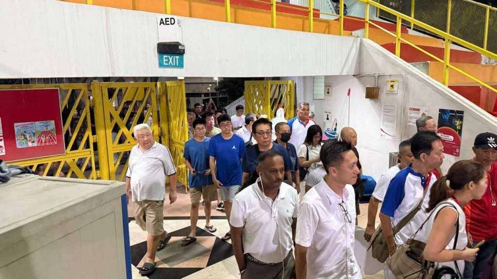 一些公众提早到实龙岗体育场外排队,只为在集合中心开放时,占个好位置,支持工人党。