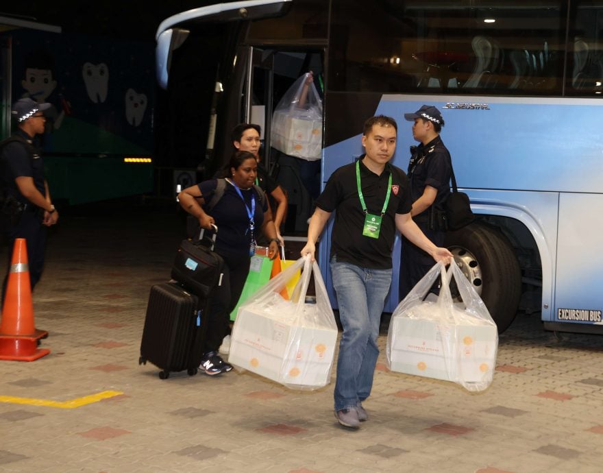 选票抵达南侨中学计票中心,这是盛港集选区的其中一个计票中心。(图:早报网)