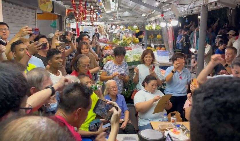 随着阿裕尼集选区的抽样结果出炉,许多在后港第322座组屋“燕飞来”咖啡店的工人党支持者非常激动,并兴奋表示“阿裕尼赢了”。(图:早报网)