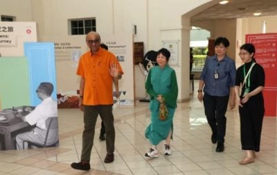 新加坡总统尚达曼和夫人珍一藤木在下午约5时30分抵达南洋女子中学校投票。