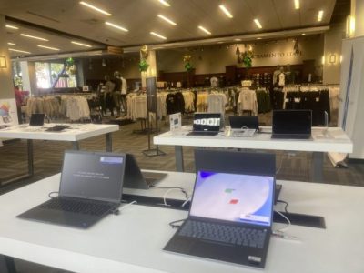 以大学书店来说,Hornet Book Store算是挺大的,里头也设有咖啡厅和卖文具、电脑和笔记本的角落。真正卖书的空间,相比之下只占了20%左右。
