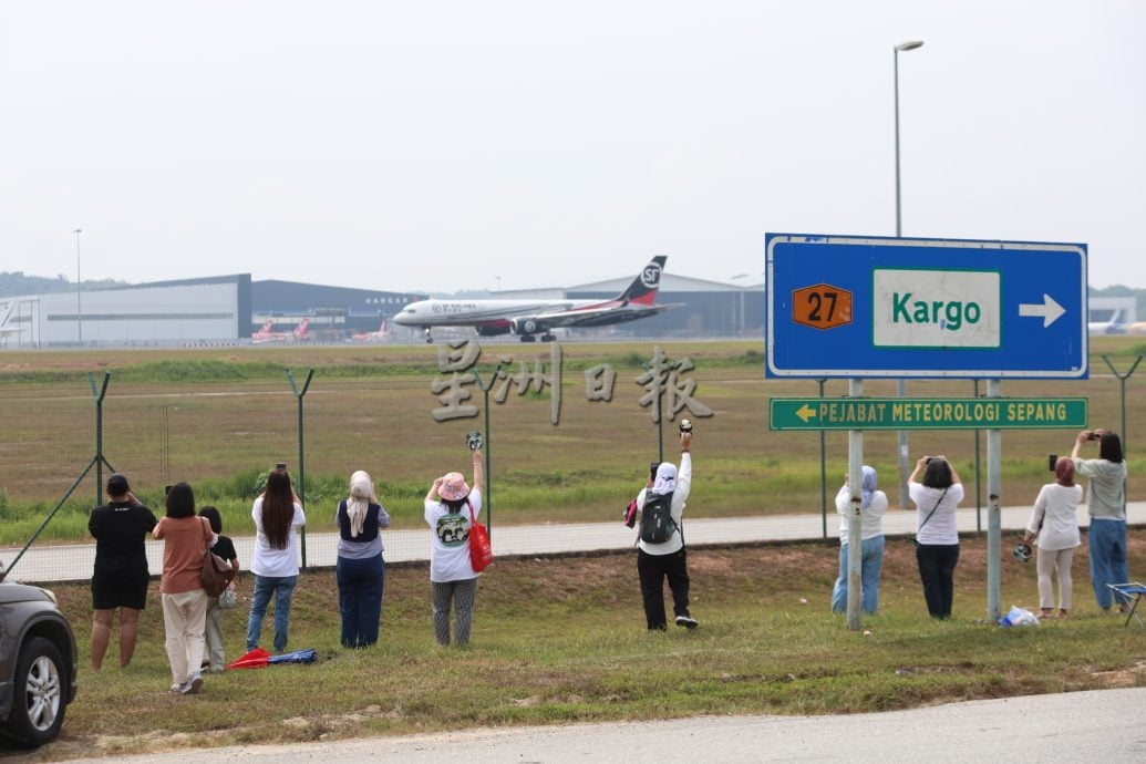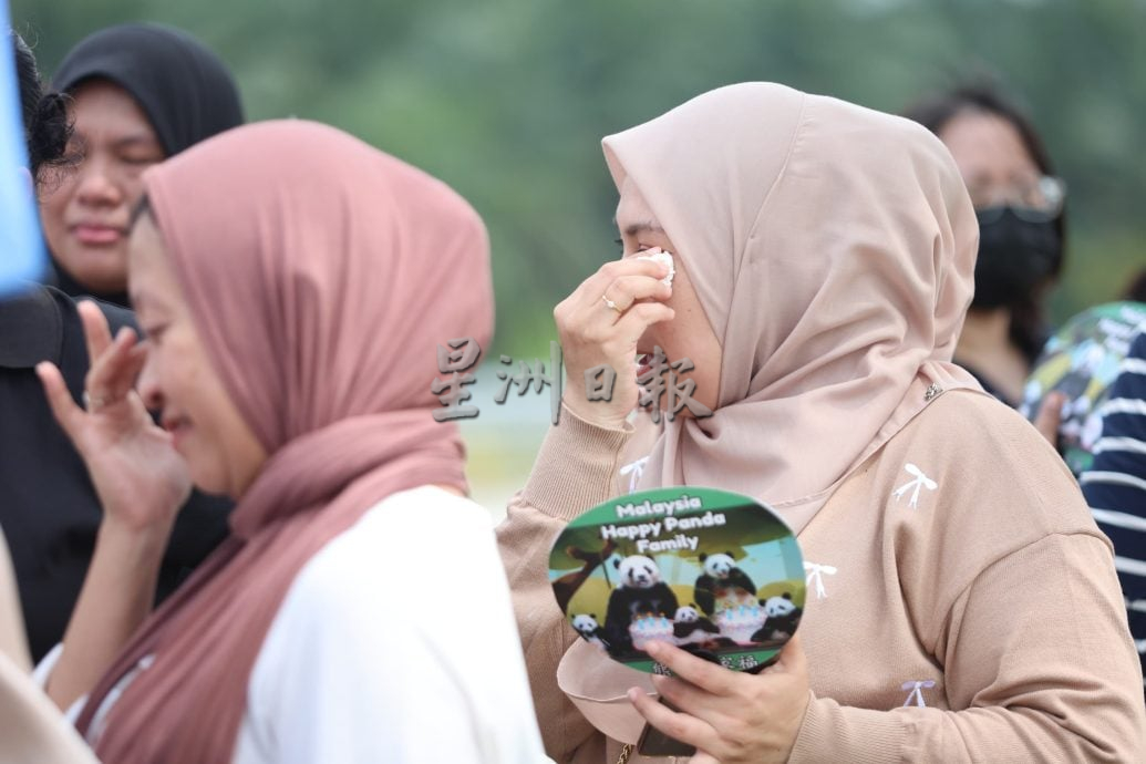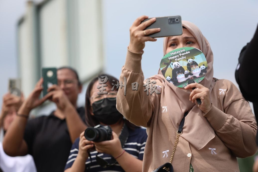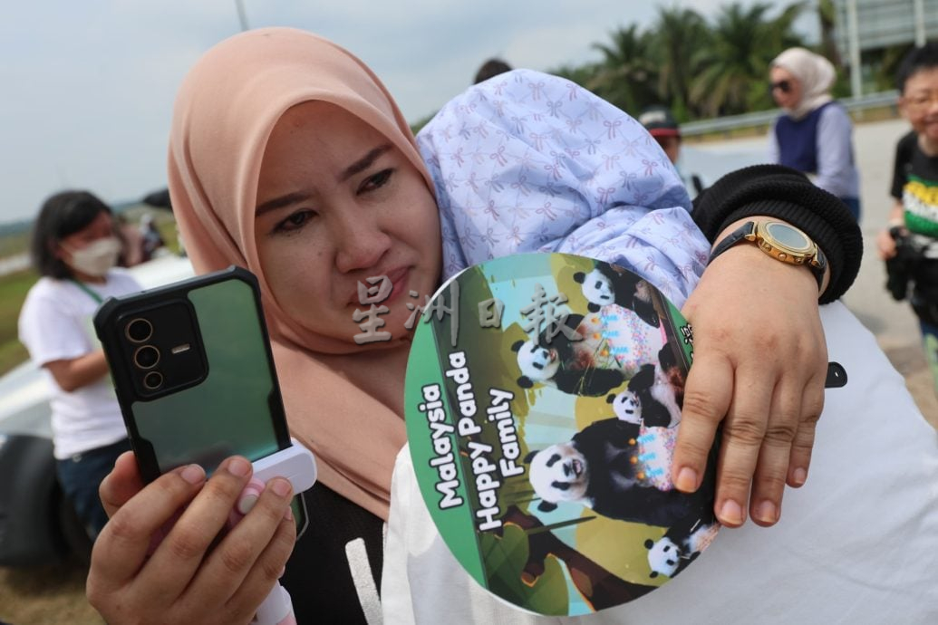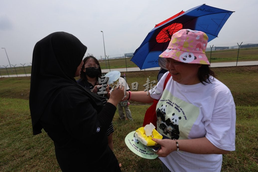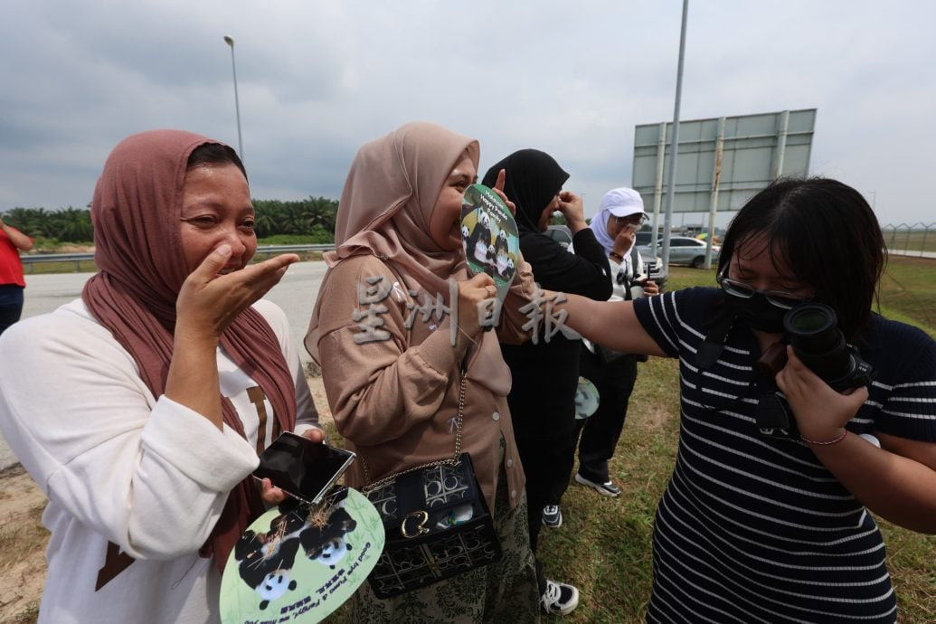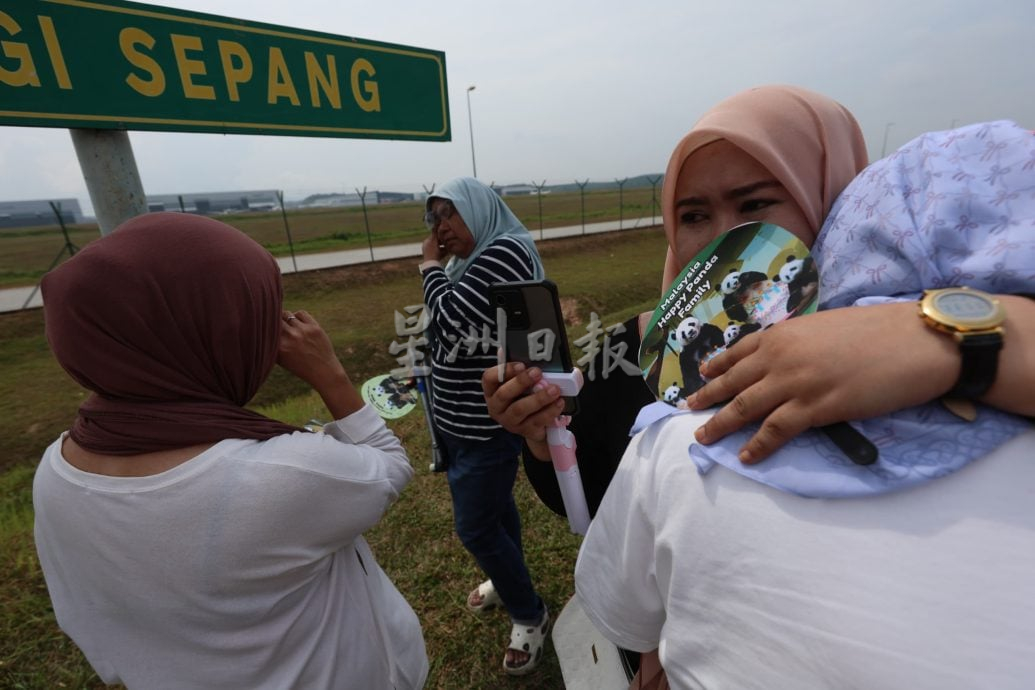 为了目睹兴兴和靓靓搭乘的班机起飞、正式向它们道别,今早10时30分左右,熊猫粉丝们陆续聚集在吉隆坡国际机场飞机跑道外方道路旁,而这也是他们两年前送别熊猫“谊谊”和“升谊”的地点。