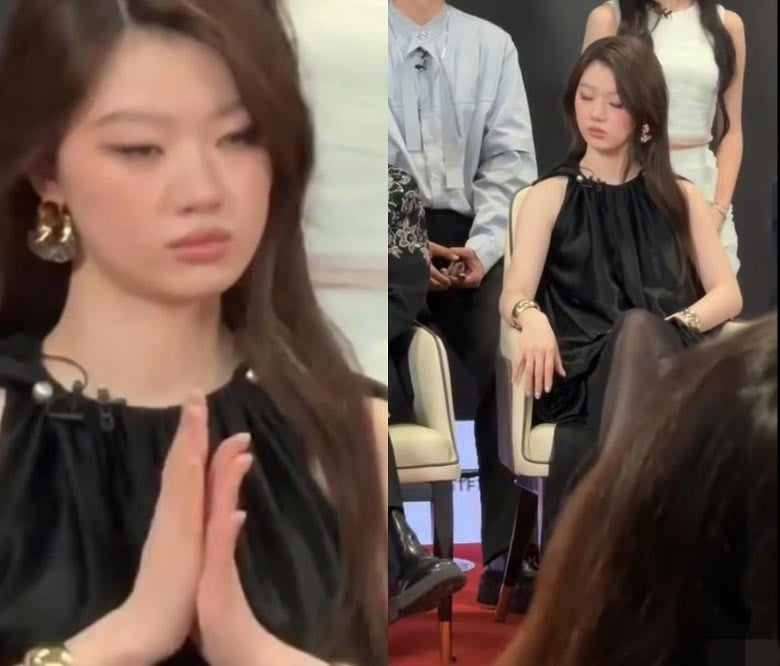 单依纯被抓包在发布会上打瞌睡。(取自网络)
