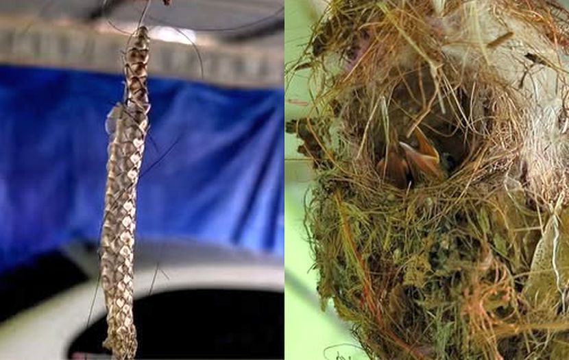 更令人惊讶的是,他发现鸟巢里除了蛇皮外,竟还夹杂着人类的头发,作为筑巢的“建筑材料”。