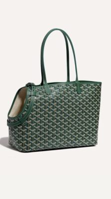 Goyard的“购物袋”设计的手袋一直都备受时尚人喜爱,如今在边角进行了特别的处理,就成了让人带上宠物出门的单肩袋。