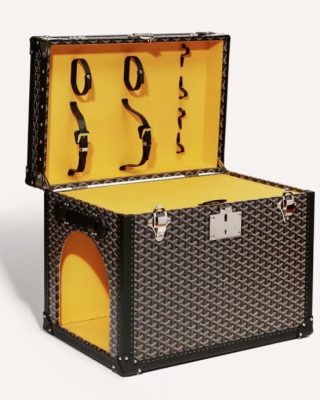 自1890年代起,Goyard就推出了“爱犬时尚”为当时达官贵人的尊贵爱宠提供旅行用品。这款宠物提箱酷似当时远游出行的箱子,每个细节都经过精心考量,为宠物贴心设计。