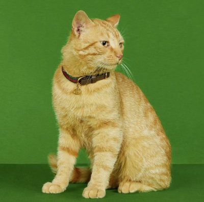 具Gucci品牌标志的红绿相间项圈,加上金属小logo吊牌,小花猫也带点时尚感了。