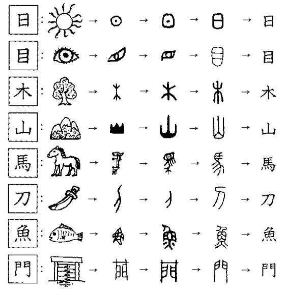 中国的甲骨金石文里头所呈现的许多文字,均以象形文字为主,出现在商代(三千多年前)之前,其相关历史资料虽不多见,但之后确知断于秦灭六国,也就是李斯以小篆取代大篆统一了中国文字之时。如今,在此经物换星移时代的演变,象形文字的价值,早已不再是用于书写记录的一种文字工具,充其量它只可说是提供专家学者们考古研究之用的古文字参考罢了。历经数千年的演变,华汉民族所使用的文字,遂渐演变成了我们现代引以为豪的标准“汉字”了。从李斯开创书写小篆开始,经过隶书、草书、行书的演变,直到今日我们因电脑化印刷术的统一需求,而普遍采用具有清晰一贯性规格的书体“楷书”,我们的汉文字终于有了非常清楚且明确的使用规范与要求。不论是文字结构、部首、笔顺等基本规格化要求之下,这一系列的汉字规范当中,仍不难看得到现代的一些字形里,隐约还带有当年象形文字的影子。