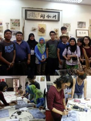 在推广我们的书法创作中,由于现代房子设计没太多空间的局限,我们可以善用汉字的象形特质,保留书法内容与色彩,以华人独有的生肖写成当年春节堂挂,取代受空间限制的春联;生肖篆书略改其形,以激发不谙中文的友族兴趣学习书法;依友族原文名字翻成中文,并以书法方式呈现其中文名字等等,以臻达至多元种族环境的传统文化艺术的和谐交流。