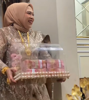 《Wolipop》新闻门户昨日报道,社交媒体疯传一段视频,可见一名新娘家人之一手持装有现金的聘礼托盘。