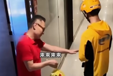根据网传视频,一名送餐员送餐时被顾客叫住名字,一时愣住,只见屋主微笑着说:“你现在做这个(送外卖)呀?”