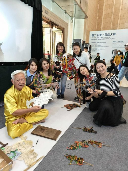 在家文物遗产局的精心安排下,大马国宝级皮影戏大师杨福成受邀参加非遗节,并在现场进行皮影戏皮偶制作示范。