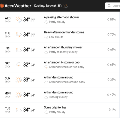 砂气象局官员接受星洲日报记者访问时说,尽管未来两周局部地区午后可能出现短暂雷阵雨,不过,天气依然炎热,最高气温预计维持在34摄氏度。