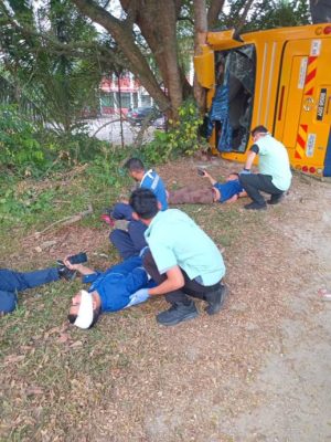 工厂巴士突失控侧翻 33外籍员工轻伤