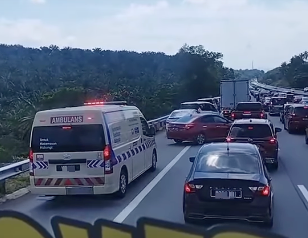 (八打灵再也6日讯)紧急时刻分秒必争,但一辆救护车却被卡在智能车道的车龙里无法前行,画面曝光后引发热议!