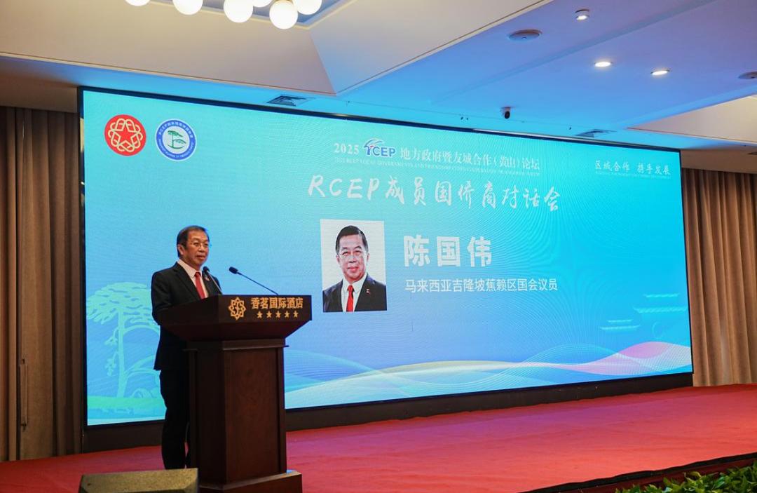 陈国伟也是行动党蕉赖国会议员,他受邀到中国黄山出席“2025年RCEP地方政府暨友城合作(黄山)论坛”,在“RCEP成员国侨商对话会”上发表演讲时指出,自RCEP在3年前生效,已交出亮眼成绩单,其中又以关税减免、快速通关与原产地累积规则等制度红利,正深刻改变区域产业链,企业物流成本平均下降逾20%。