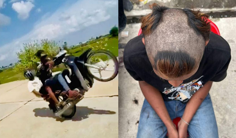 (金边7日综合电)在公路上骑摩托车玩特技扮“超人”,是部份年轻人炫耀个人技术的方式,柬埔寨一名少年将自己骑著摩多在高速公路上表演特技的照片和视频放上网,换来的下场是警方免费为他设计了一个新的发型,让他欲哭无泪。