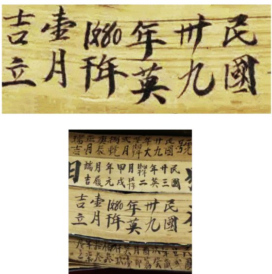 马六甲另一带有“英”字、刻有苏州码子纪年的古建筑物,就是青云亭内建于1890年的老戏台上,其中一根柱子清楚的记载着其落成年份(如图)。