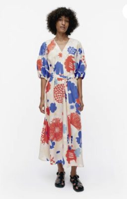 Marimekko,这个听起来酷似一个人名的名字,其实在芬兰语里“Mari”就是当地女性常见的名字,而“mekko”则是裙子的意思。所以,就字面上意义而言,Marimekko的故事也是从“一条裙子”开始的。