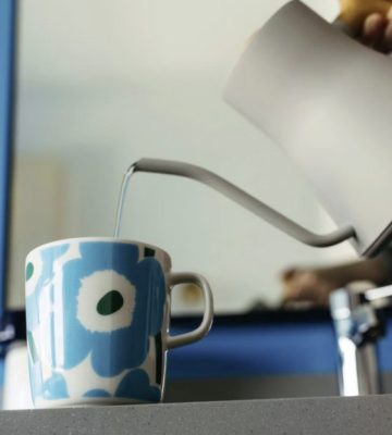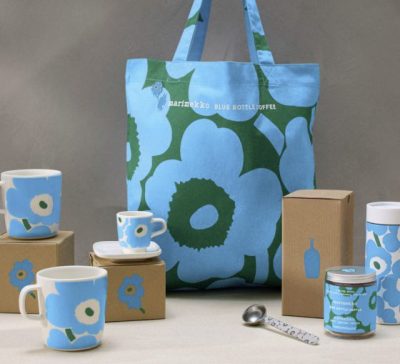 美国精品咖啡连锁店蓝瓶咖啡以追求极简美学、真实纯粹见称,今年与Marimekko推出的联名款,采用了Unikko印花设计,而且在设计中融入了具蓝瓶咖啡品牌标志性的蓝色调,从保温杯到咖啡杯的生活用品都用上了这款印花。