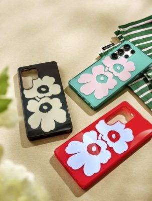 在Marimekko x Samsung的联名系列里,除了推出带Unikko印花的手机壳、耳机壳、智能表表带外,也成了电视上的“桌布”。