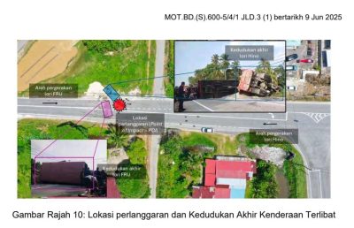 报告指出,载沙罗里的陆路公共交通委员会(APAD)车辆准证及路税在事故发生当天有效,而电脑验车中心(PUSPAKOM)检查证书也有效,其有效期是至2025年9月21日。