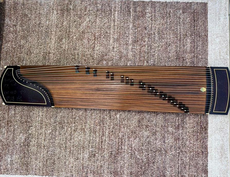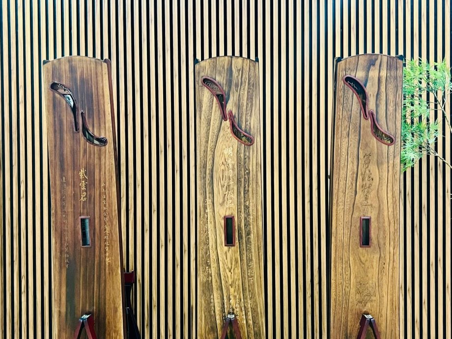 “这架名为‘天然神韵’的明清老红木古筝,令我深深着迷于其底板树心的年轮纹路;加上它音色淳朴而圆润,既适合演奏古朴悠远的慢旋律曲,亦可驾驭快节奏的技艺型乐曲,所以我就不计代价买下。而玫瑰檀木的‘紫霞瑰丽’的音色晶莹剔透,我喜欢用它来演奏《枫桥夜泊》,低音区透着一种‘夜半钟声到客船’的空灵感。”谈及收藏品时,35岁的建缗即化身为迷弟,如数家珍。