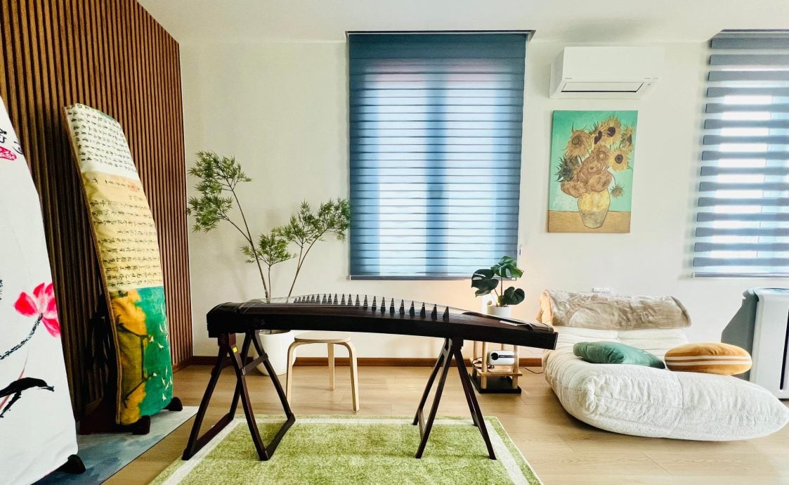 “每次放工回到家,我轻推开琴室的门,看它们沐浴在夕阳柔和的光里,那一刻,岁月静好,心安如初,一切的付出都值得了。弹古筝前,我总会营造仪式感——依天气挑选香薰,任烟雾萦绕,宛如置身仙境。然后,掀开防尘罩,拨动琴弦,世界立刻变安静了,时间也慢下来,纷扰皆与我无关。我开始沉浸在‘莫怨松风,当观水月’的心流里,何其美好。”身为霹雳金宝拉曼大学中文系的荣誉学士毕业生,他的言谈间,总藏不住那份诗意。