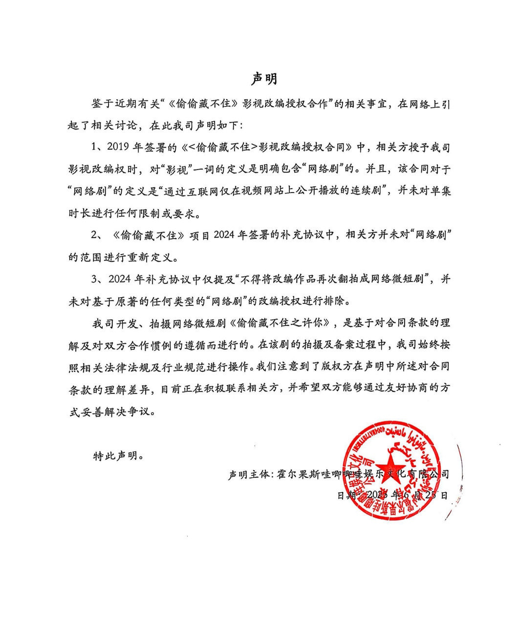 《偷偷藏不住》翻拍短剧版 涉侵权遭讽是低配版