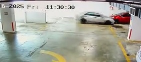 视频 | 男子轿车电池没电 停车场推车下坡 失控撞毁Myvi