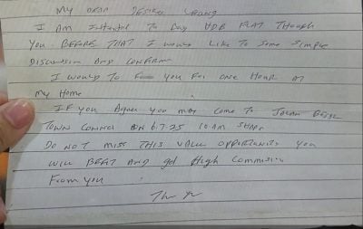 女事主梁政彤(30岁,房屋中介)受访时告诉《新明日报》记者,她在6月29日收到一封顾客写来的亲笔信,但内容却令人咋舌。