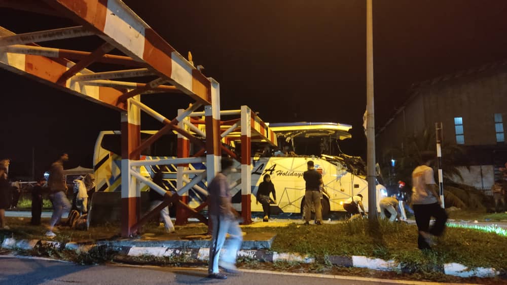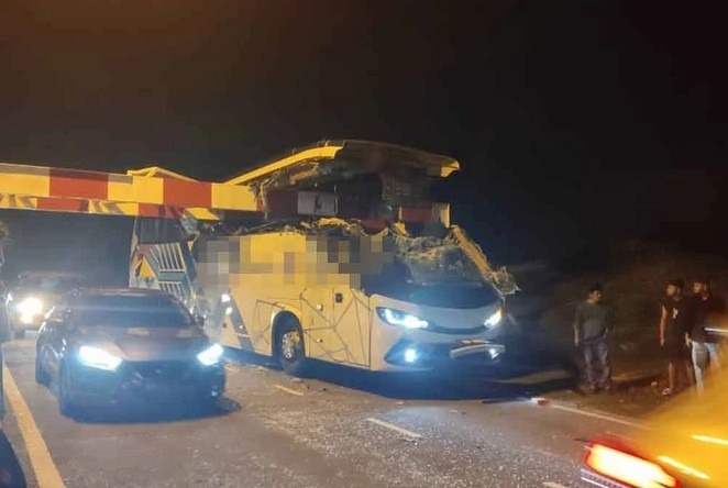 加影警区主任纳兹荣助理总监发文告指出,62岁巫裔男子当时驾驶一辆载有19名成人和3名儿童的长途巴士,从关丹往森美兰及马六甲,结果在上述路段时因使用导航系统,没有注意到限高杆而撞上。