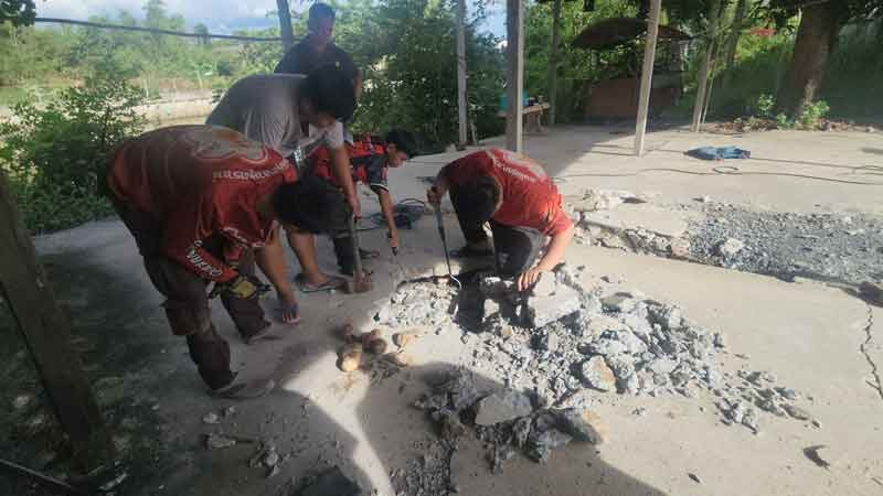 泰国佛统府直辖县25岁商人沃塔蓬星期日把车子停泊在住家小区的停车场时,发现不远处的洋灰地面有两个蛇头冒了出来,他怀疑地下可能还有蛇,连忙拨电联络警方和当地基金会人员来捉蛇。