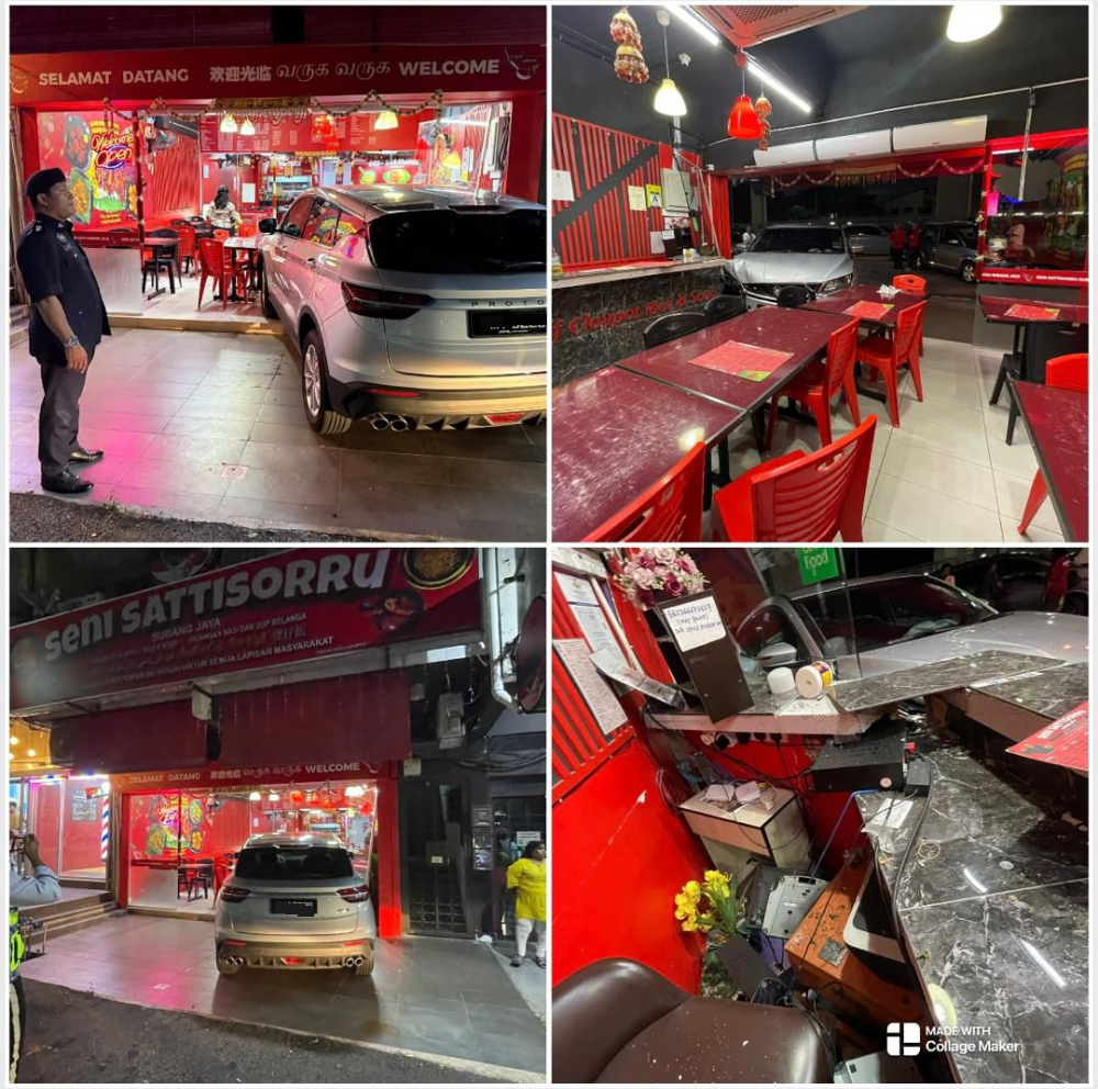 (八打灵再也7日讯)男子本欲停车却误踩油门,导致休旅车瞬间失控加速猛撞店铺,惟所幸并未酿成人命伤亡。