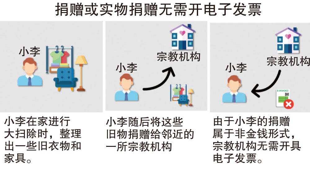 (八打灵再也8日讯)根据内陆税收局(LHDN)最新公布的电子发票指南,所有宗教组织,包括非穆斯林宗教团体所接收的捐款或奉献,一般情况下无需开电子发票。