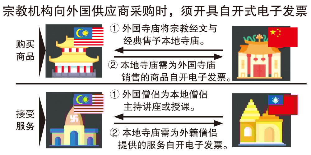 “税收局昨日(7日)已发布最新指南,区分两类宗教组织:若宗教团体并未获得所得税法令第44(6)条文等特定条款下的免税地位,其接收的捐款和赞助可豁免开具电子发票。