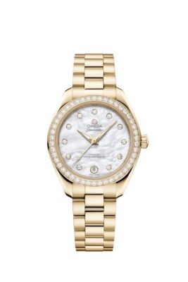 具150米防水功能、直径30毫米的Aqua Terra备有12个不同的款式,足以满足女性依个人喜好选择彰显个性的表款搭配,出席不同的场合。其中更备有以Omega独家材质18K Moonshine™金、18K Sedna™ 金 、精钢及双材质精心打造的款式。